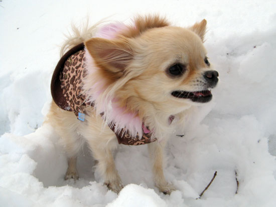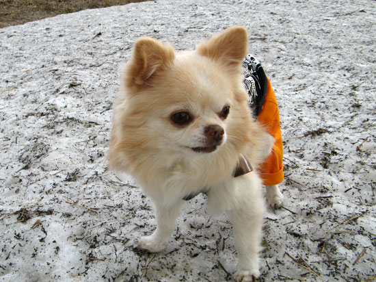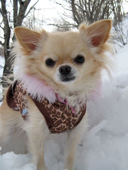 おやつはもらえる。アクセル、残雪の上。