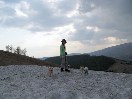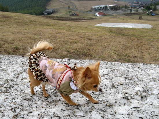 アクセル、残雪の上。
