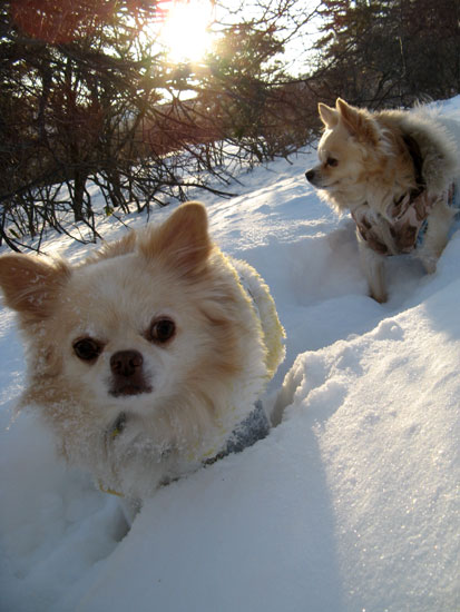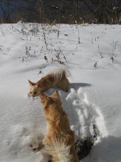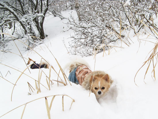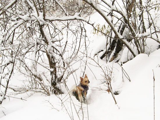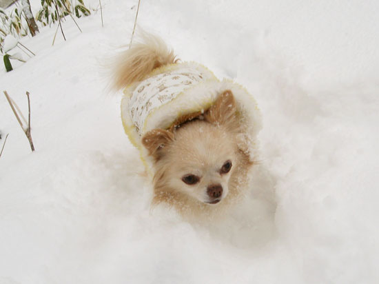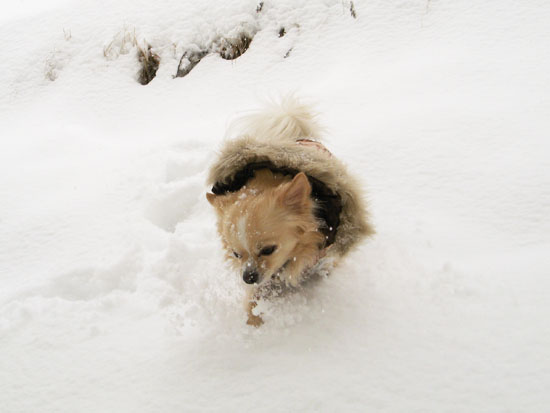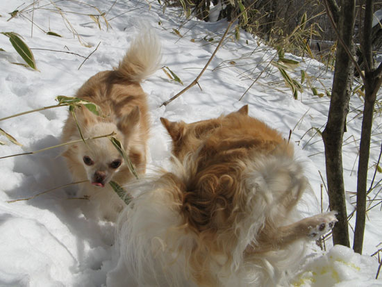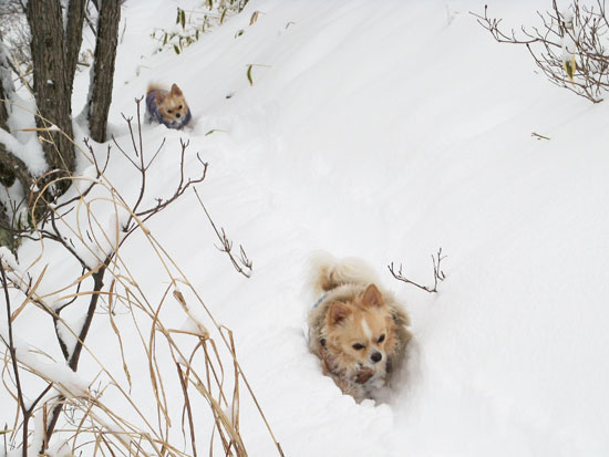 おやつで釣って、抱えて、一生懸命サラサラ雪で