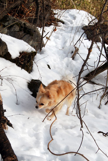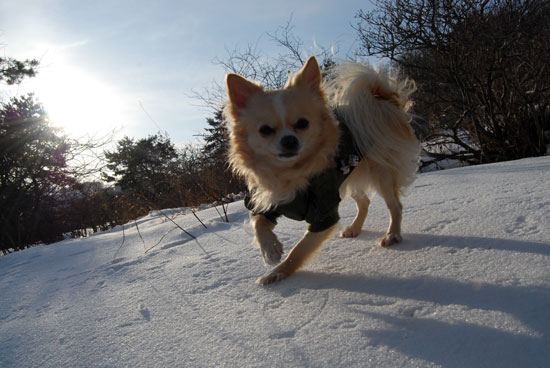 雪も大分硬くなってきたので、アクセルでも歩ける。