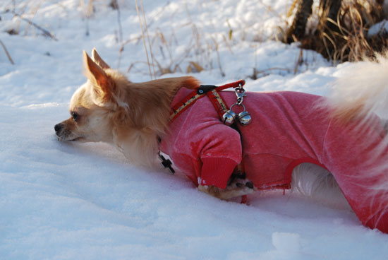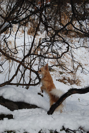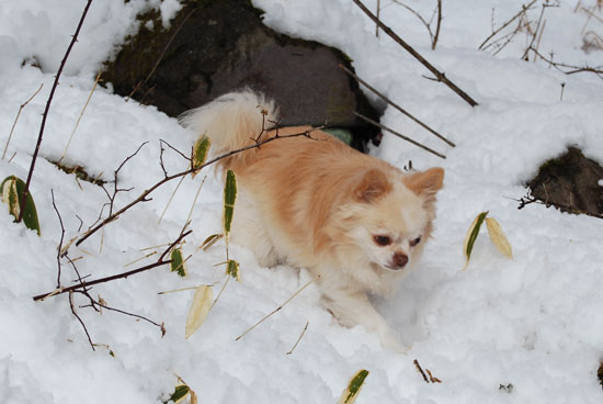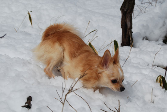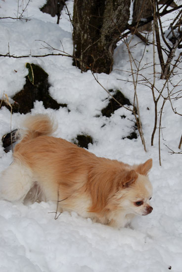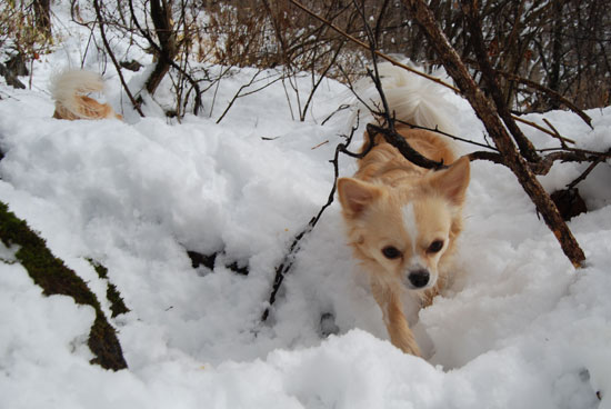 険しくてもきれいな雪の中のケモノ道は快適だから。