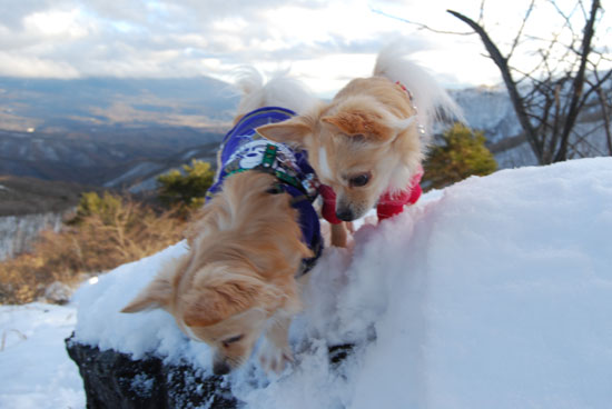 見晴らし岩はもう日陰だけど、八ヶ岳と記念撮影。