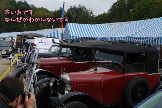 展示車の奥には、パーツやグッズ、食べ物屋のテントブースが並ぶ。