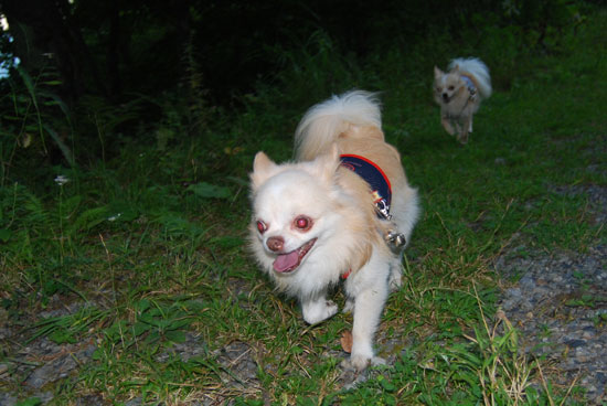 本当はストロボ光ってなくて、ワンたちはかなり暗かったのだが、