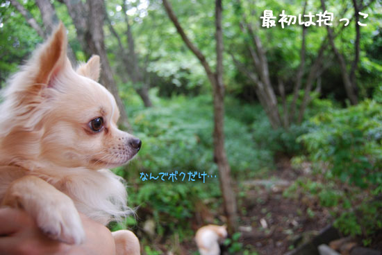 雨の後はシカが出やすいから、ヨー助は抱っこで出る。