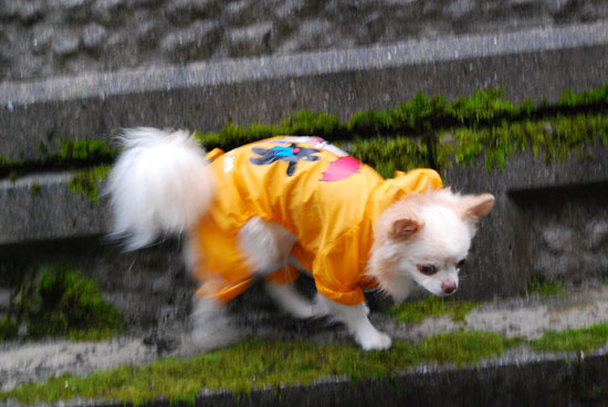 雨の合間に外に出る。