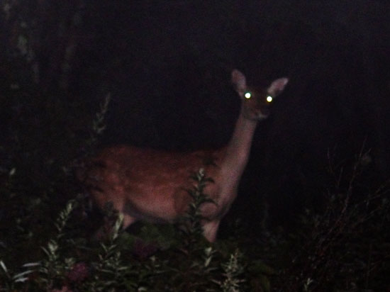 夜、家の裏にシカ。